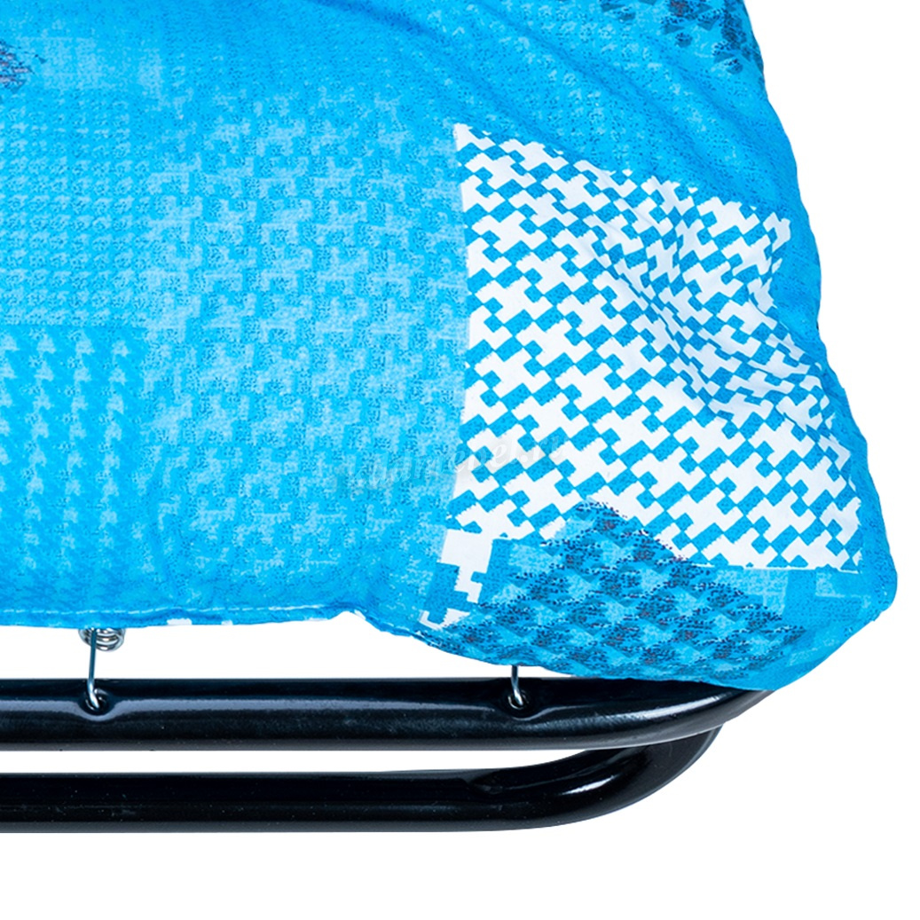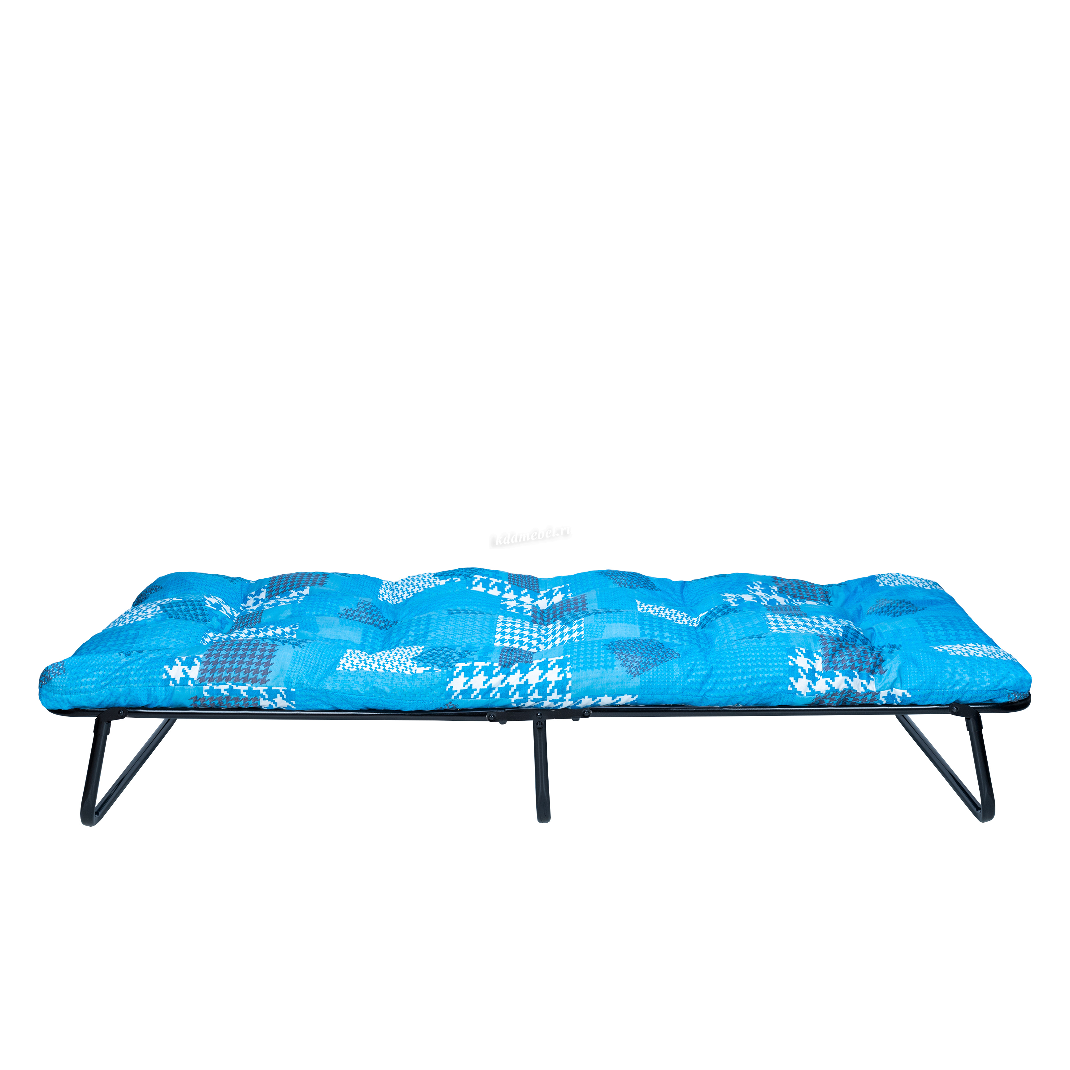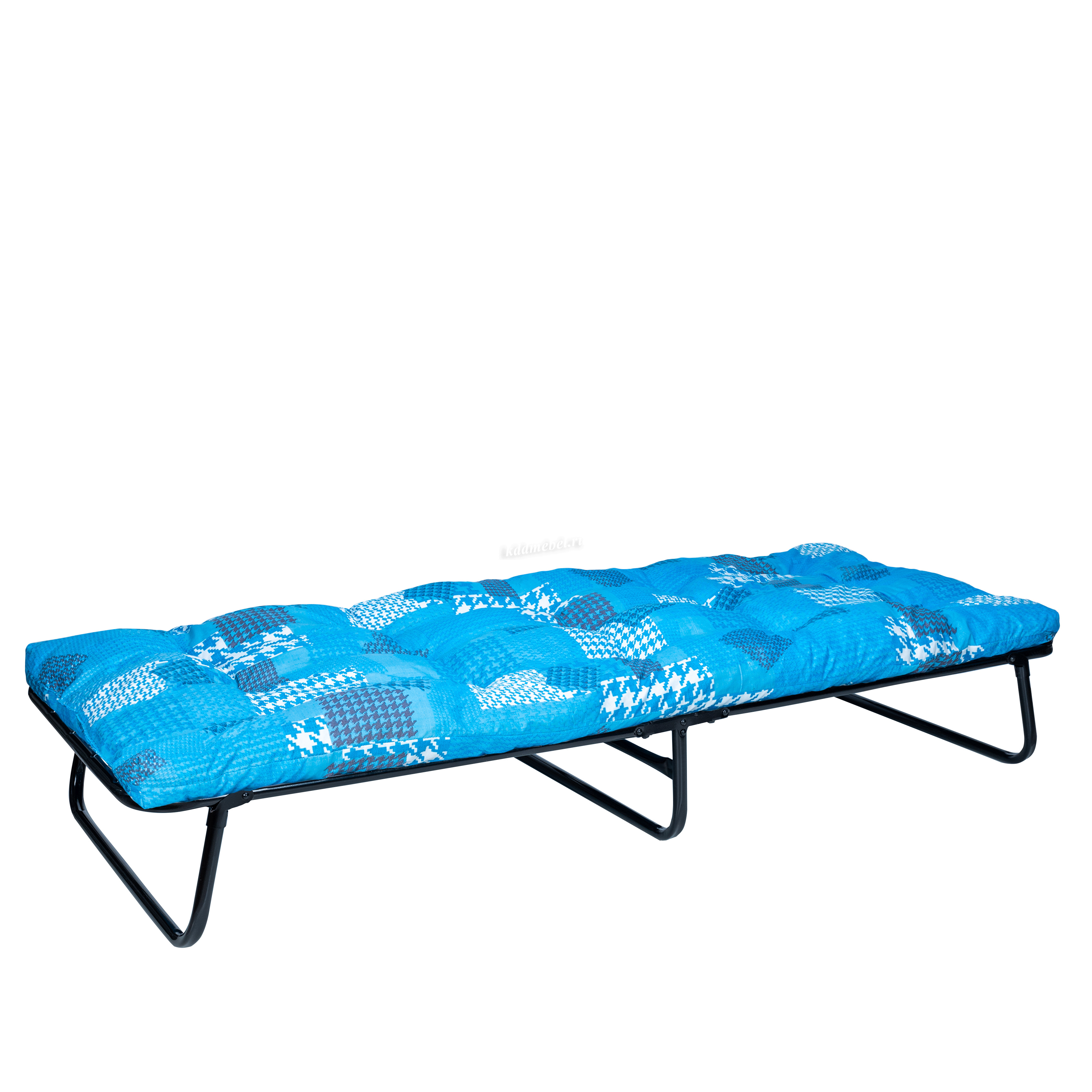 Раскладная кровать 202 модели имеет мягкий, пышный матрас с наполнением из поролоновой кроши толщиной 10 см. Основание кровати – оцинкованная сетка, диаметр стальных труб каркаса 25 мм., благодаря чему кровать выдерживает нагрузку до 150 кг.