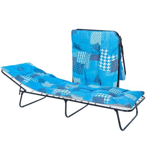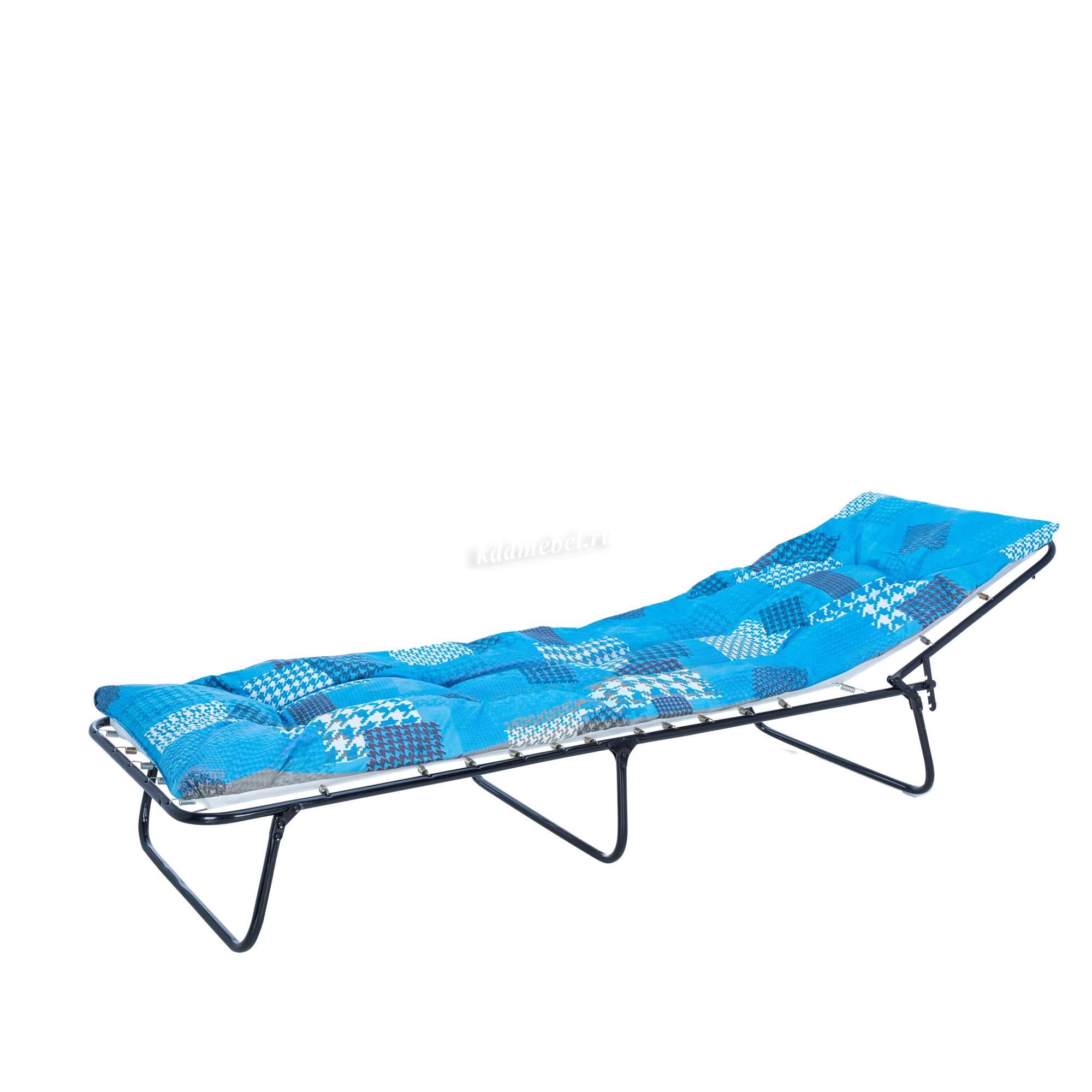 Раскладная кровать 207 оснащена регулируемым подголовником, с помощью которого возможно подобрать идеальный уровень наклона и сделать отдых максимально удобным и комфортным. Основание кровати – ткань ПВХ, в комплекте идет матрас толщиной 6 см. с поролоновым наполнением. Стальной прочный каркас обеспечивает выдерживаемую нагрузку до 120 кг.