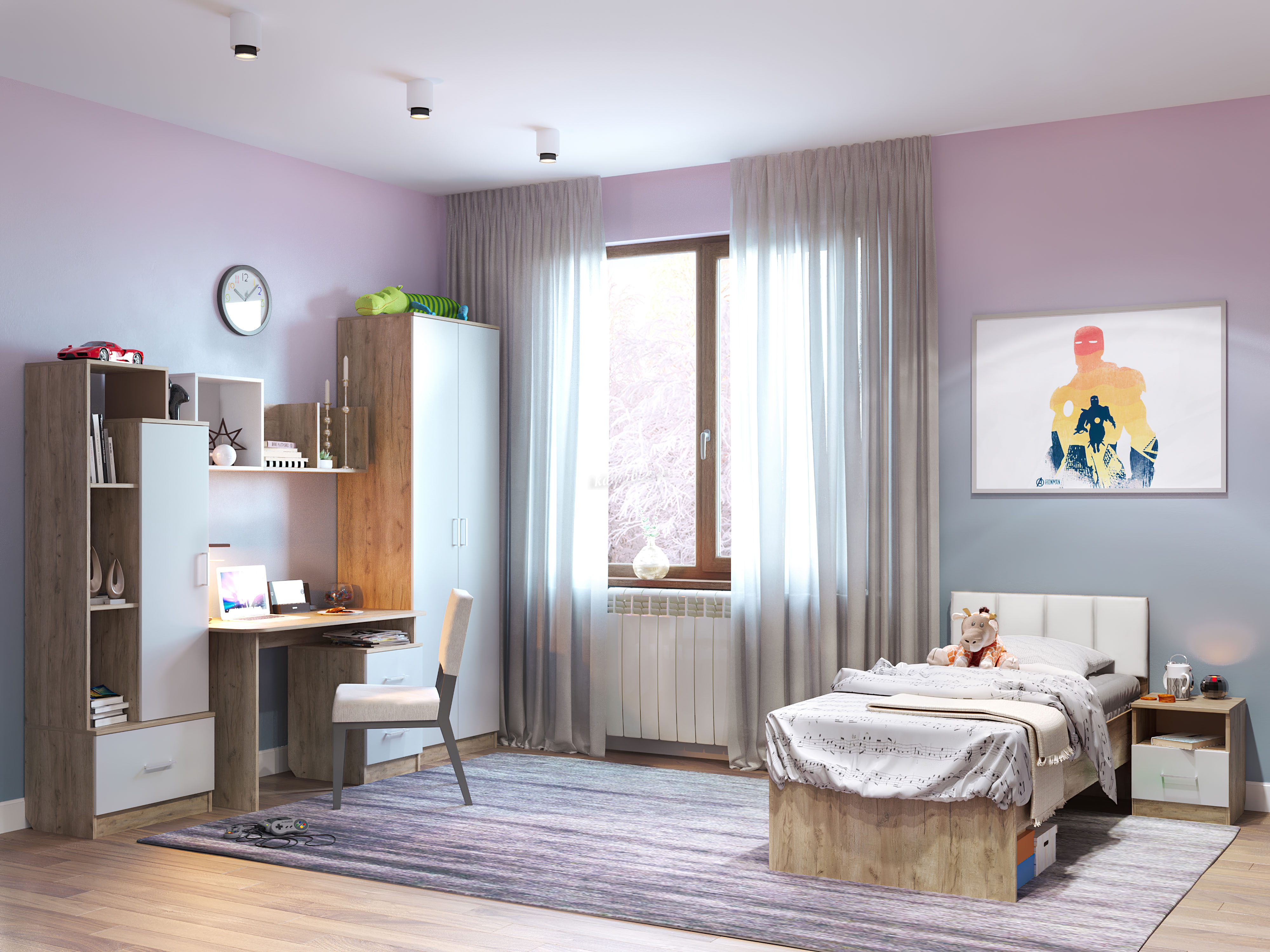 Тумба Лего прикроватная (Дуб бунратти/Белый)