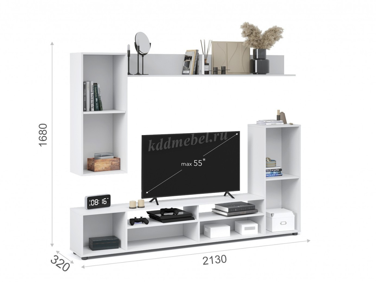 Ответ : Здравствуйте. 3 предмета: Открытая полка, навесной шкаф и тумба ТВ-всё как на фото