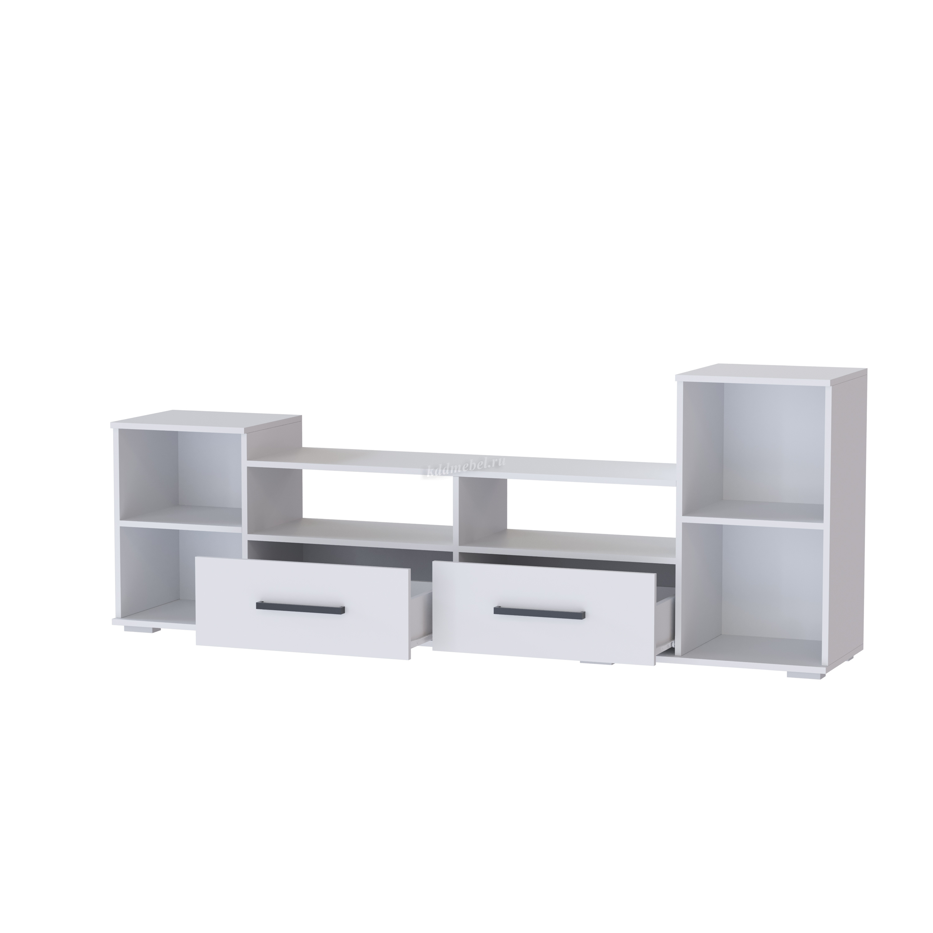 Тумба ТВ Парус-2 оснащена системой скрытых соединений элементов и надёжной фурнитурой. Разработана в современном стиле, дополнена вместительными ящиками и нишей, все это делает тумбу многофункциональным предметом Вашего интерьера мебели для удобного размещения не только ТВ - техники, но и многих других вещей.