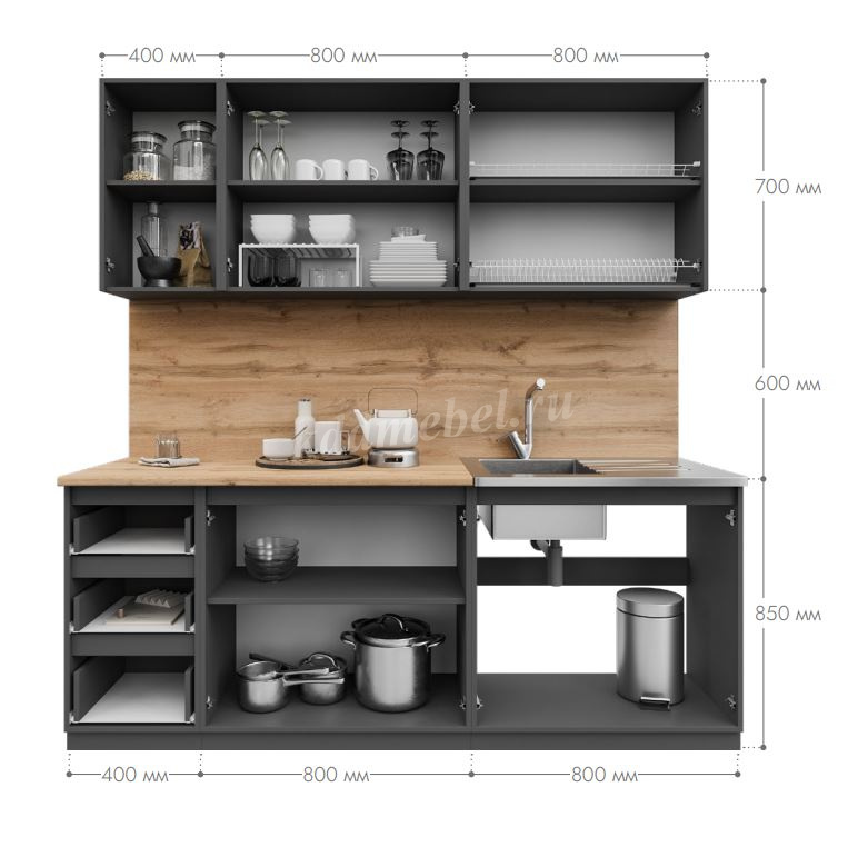 Кухня Лето 2.0 (Графит) наличие товара: