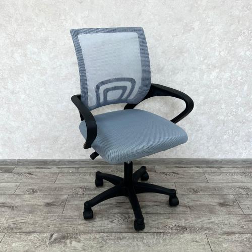 Современное офисное кресло с удобной спинкой, сиденьем из акриловой сетки и устойчивым пятилучным пластиковым основанием, снабжённым 50-мм двойными колёсиками.