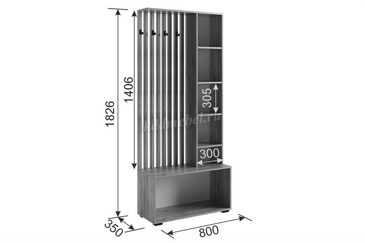 Стильные, трендовые рейки МДФ, акцентные крючки, зеркало, в котором можно себя увидеть в полный рост, полки для мелочей и головных уборов,