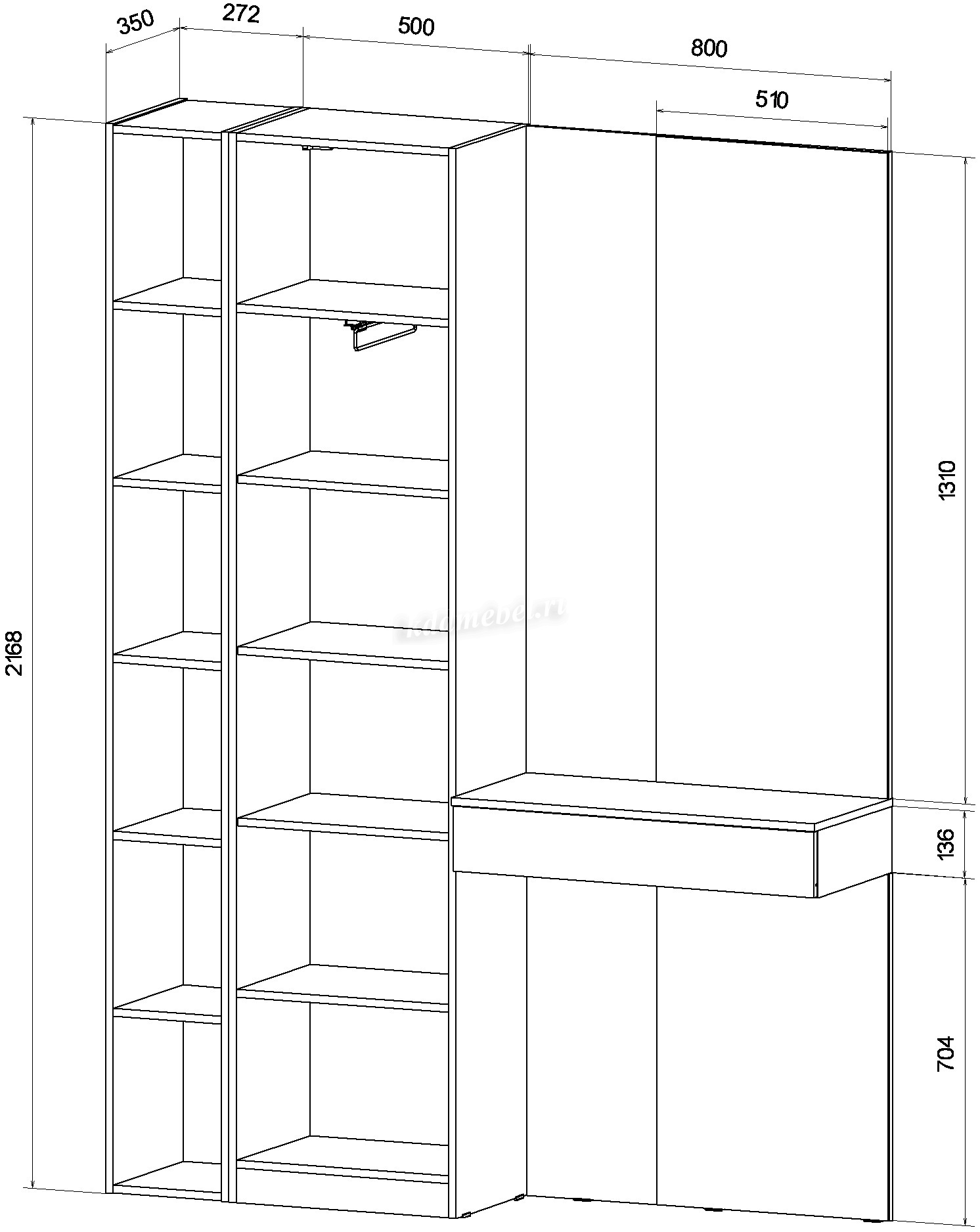 Описание Прихожая Ева (Дуб вотан/Кашемир)