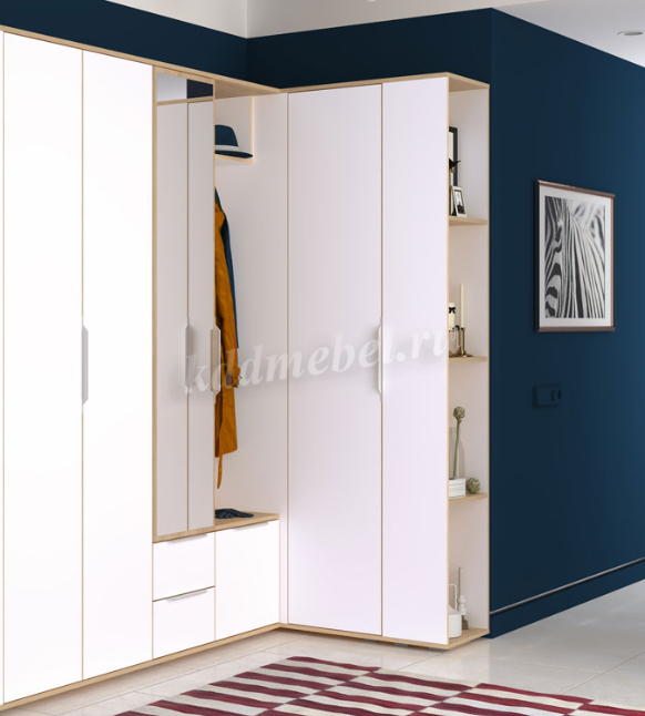 В линейке присутствуют модули с нестандартной конструкцией, которые не оставят без внимания узкие углы, повышая вместимость прихожей в разы.