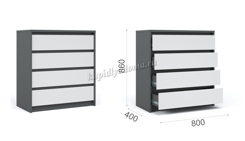 Комод 4 ящика Мишель (Антрацит/Белый жемчуг)
