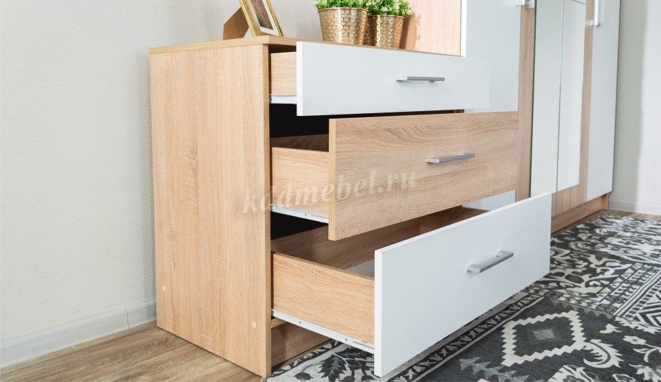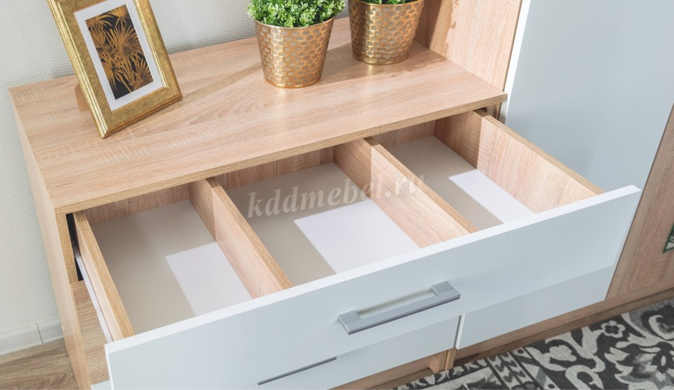 Верхний ящик комода разделен на три отдела для оптимальной организации хранения мелких предметов