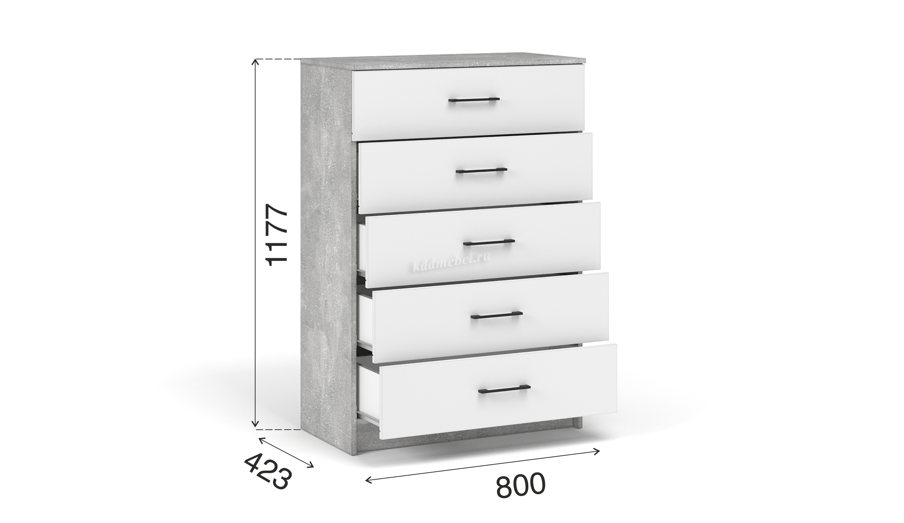 Описание Комод Чикаго 5 ящ (Ателье светлый/Белый)
