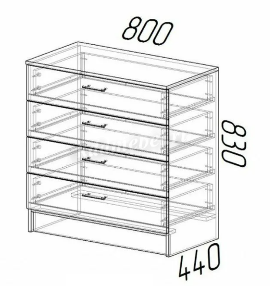 Имеет четыре вместительных выдвижных ящика.