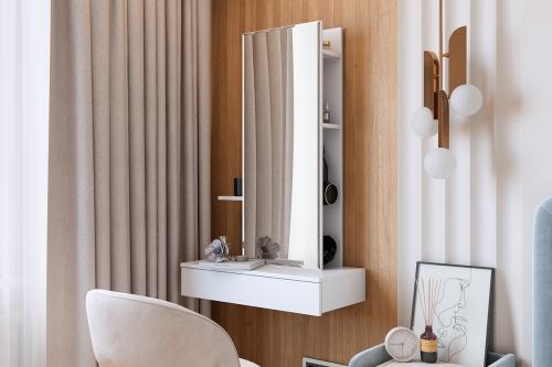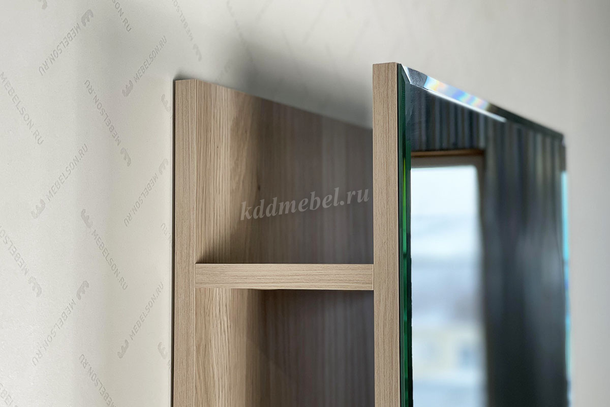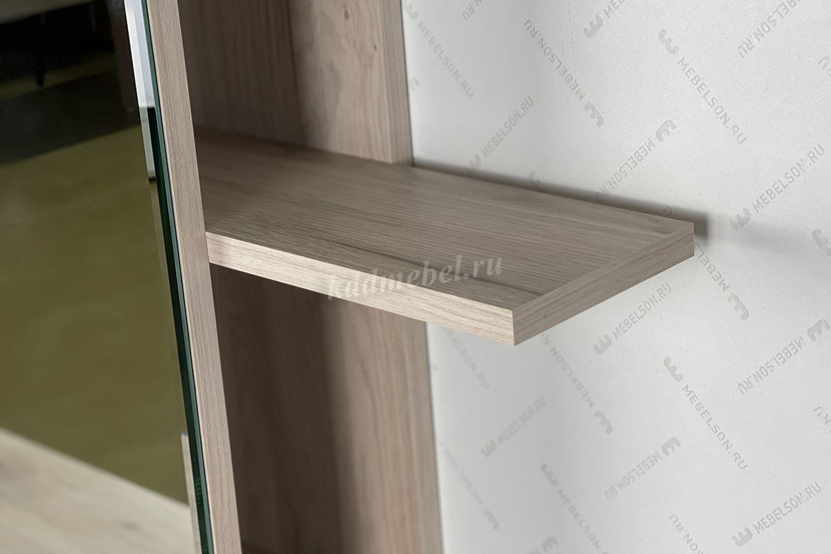 Способы установки полок смотреть в паспорте при сборке. Рядом с полками на задней панели предусмотрены стильный крючок для украшений или фена.