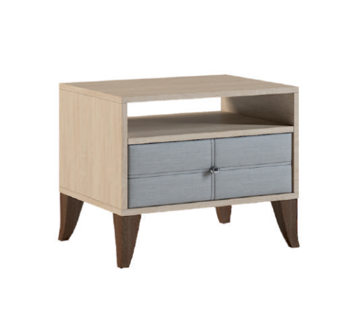 - Светлая прикроватная тумба имеет один выдвижной ящик с использованием механизма полного выдвижения и плавного закрывания, дно ящика выполнено из ЛДВП в цвет корпуса