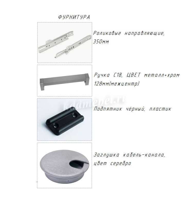 Под полочкой имеется отверстие под кабель-канал (заглушка кабель-канала в комплекте).