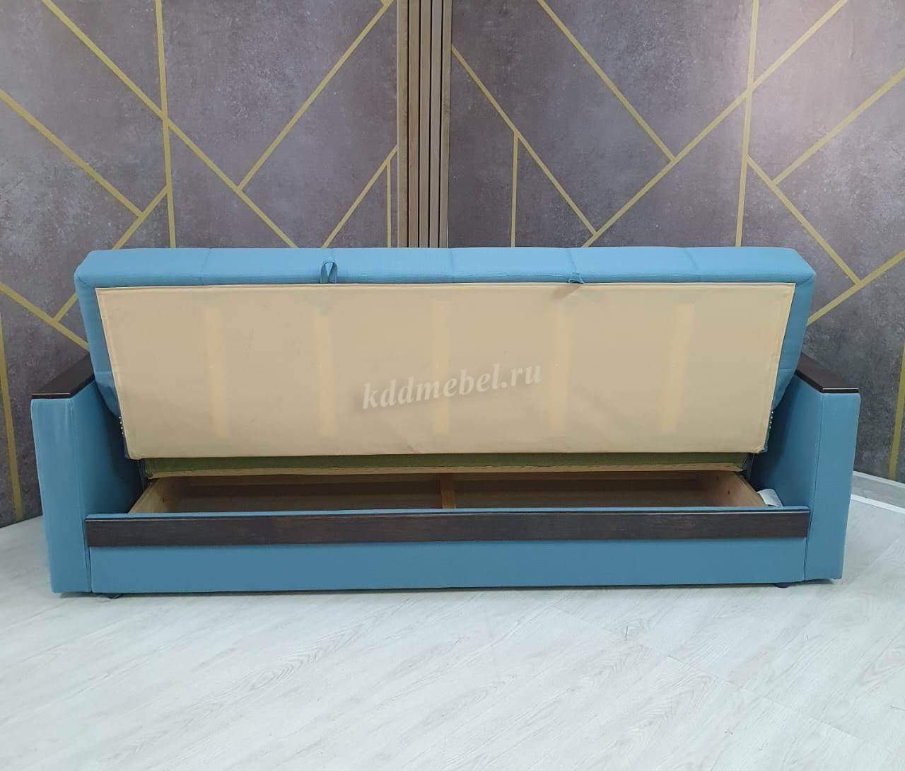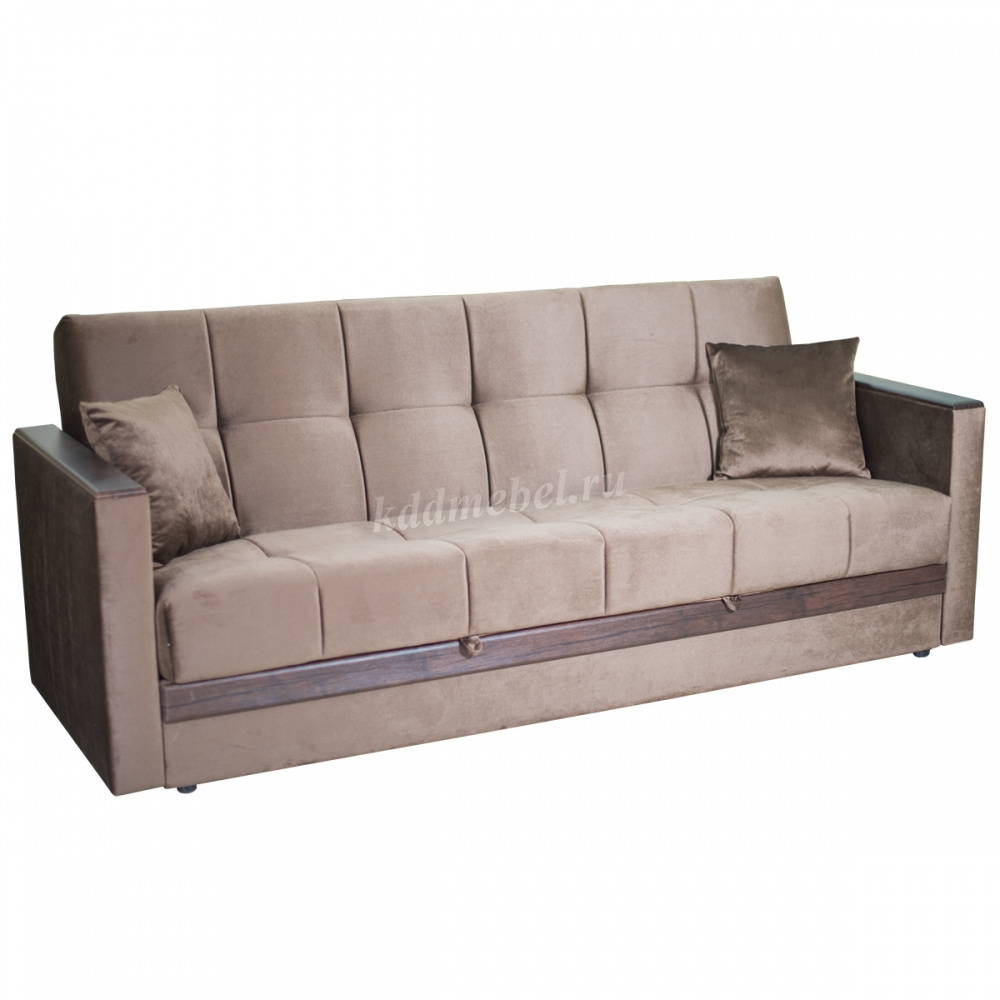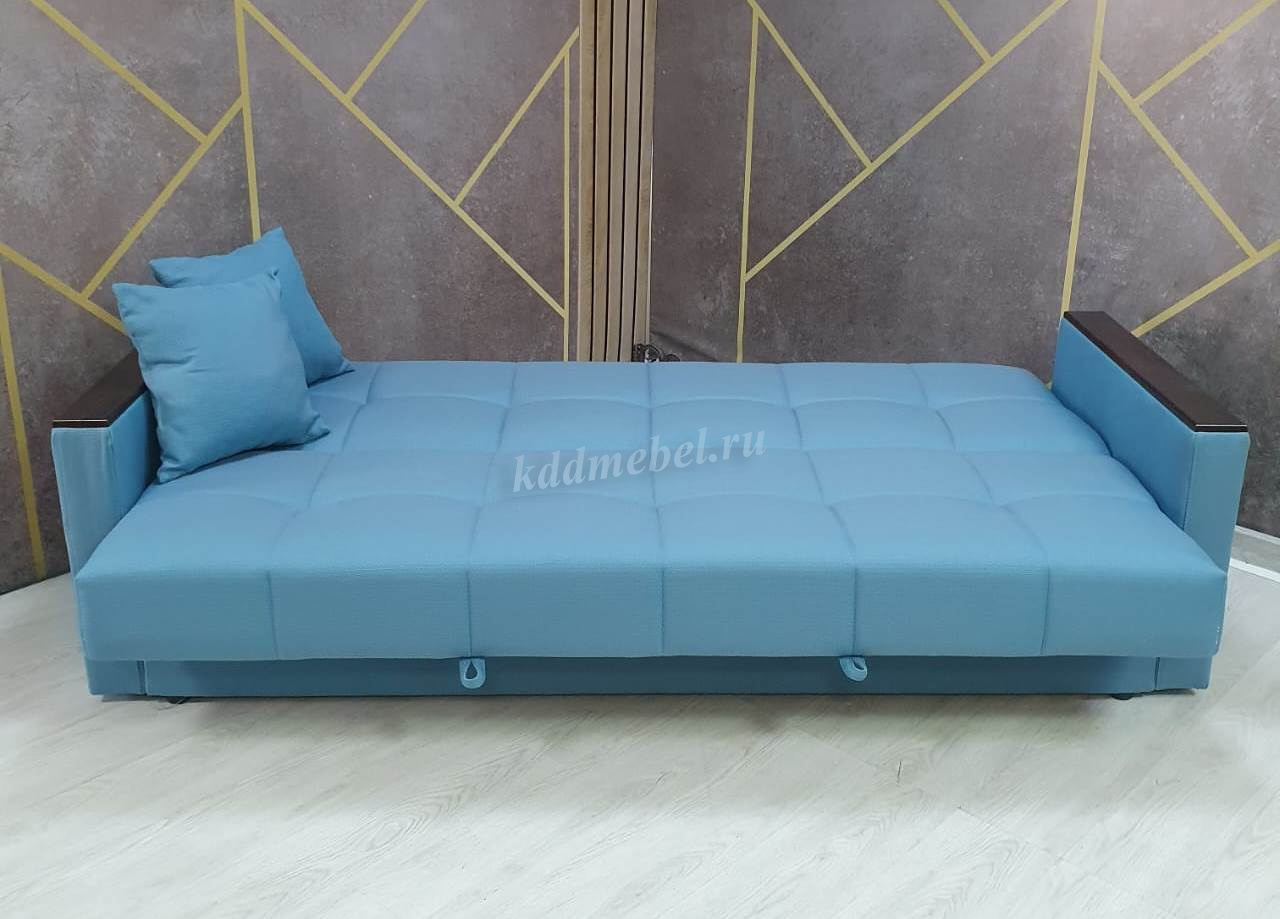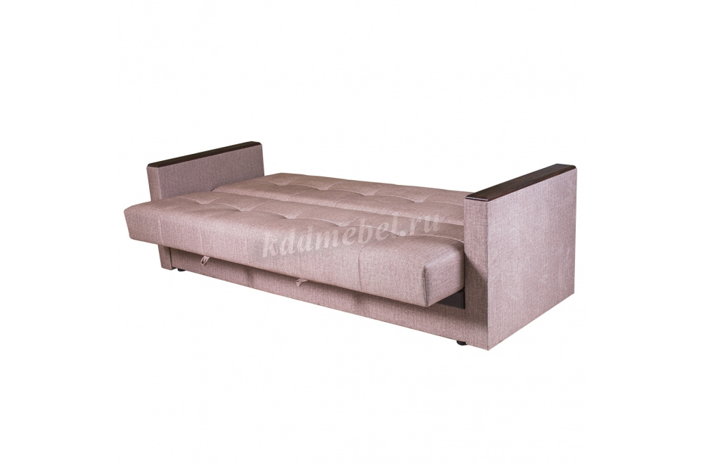 При трансформации требуется расстояние между диваном и стеной. Мебель является пристенной. Механизм «Книжка» прост и надежен в эксплуатации. Напольное покрытие в процессе раскладки не задействовано, Вы можете использовать пушистые ковры или дорогие паркеты. Емкость для хранения постельных принадлежностей с ламинированным основанием обеспечит Вам дополнительное пространство для хранения и сэкономит Ваше время при подготовке дивана ко сну. Ламинированное основание обеспечит простоту и удобство при уборке. Декоративные накладки из МДФ на подлокотниках и передней части короба, сочетают в себе представительность и элегантность, придают изящность дизайну