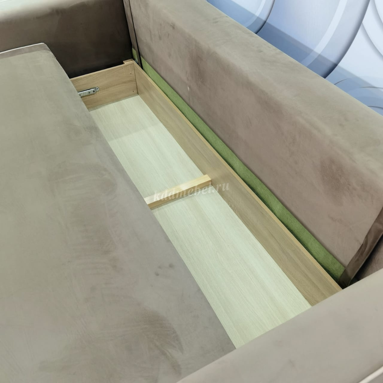 Вместительная емкость для хранения постельных принадлежностей с ламинированным основанием. Сиденье и спинка выполнены на основе независимого пружинного. Декоративные накладки на подлокотниках, облицованные пленкой ПВХ. Наполнитель: высокоэластичный ППУ, НПБ, синтепон.
