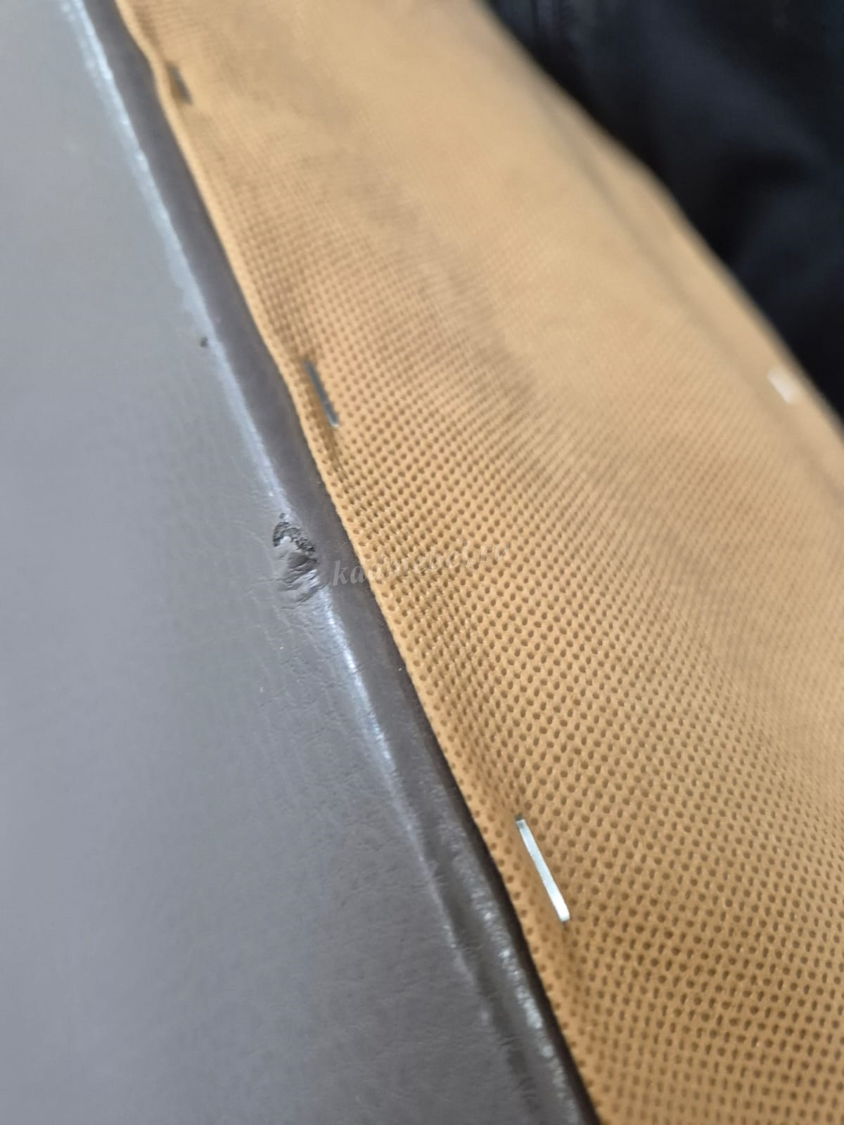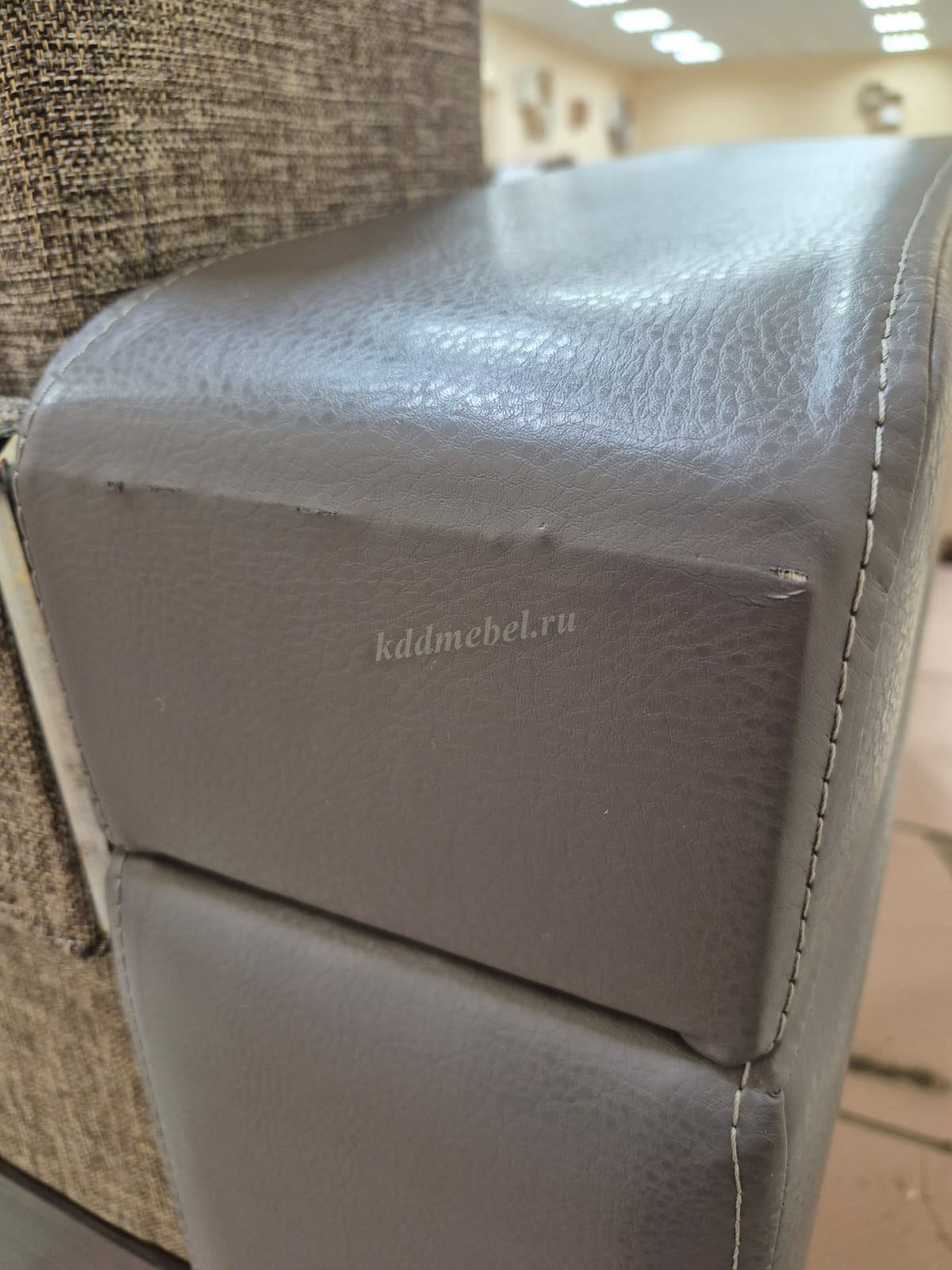 На оттоманки дивана на к/з царапина , на подлокотнике есть дефекты на к/з .