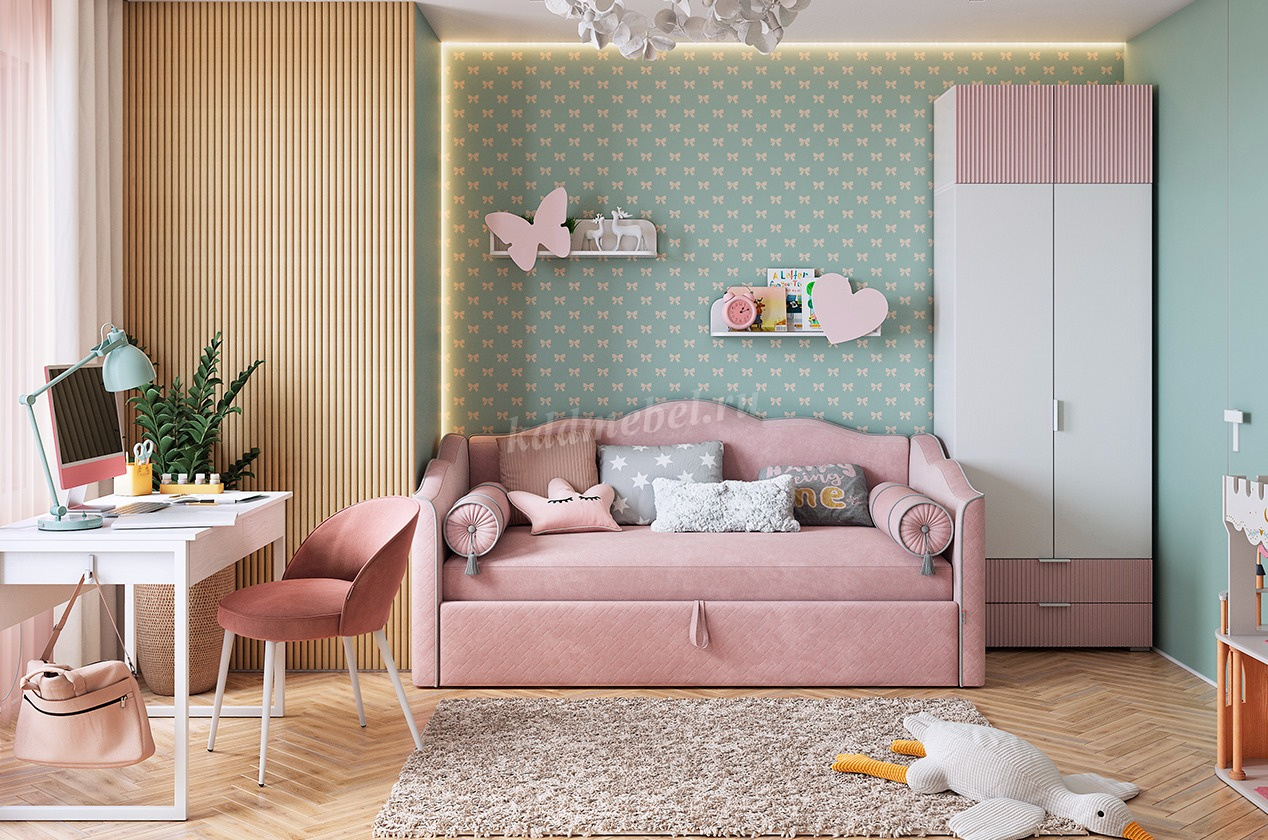 Полка навесная Бабочка (Белое дерево/Пудра розовая)