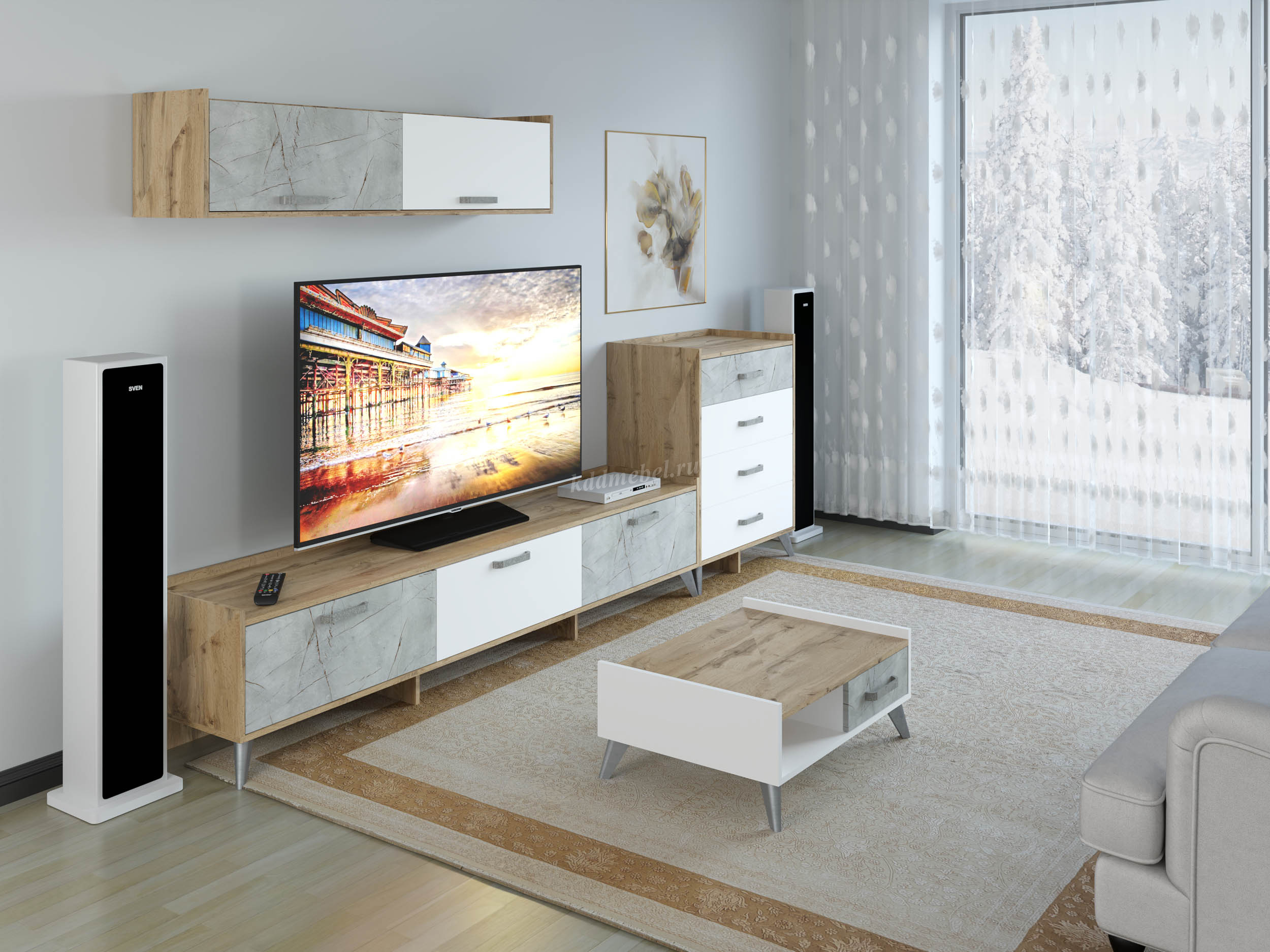 Описание Полка навесная Микс-0.9 (Дуб бунратти/Белый)