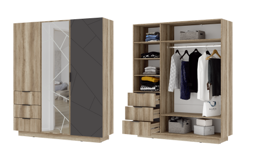 Шкаф Даллас 3-х створчатый ШК 01 (Дуб каньон/Графит)