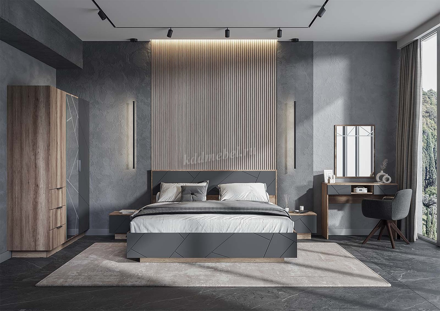 Описание Шкаф Даллас 3-х створчатый ШК 01 (Дуб каньон/Графит)