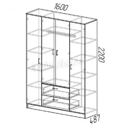 За крайними дверцами (слева и справа) у шкафа Квадро находятся полочки для белья либо других Ваших вещей;