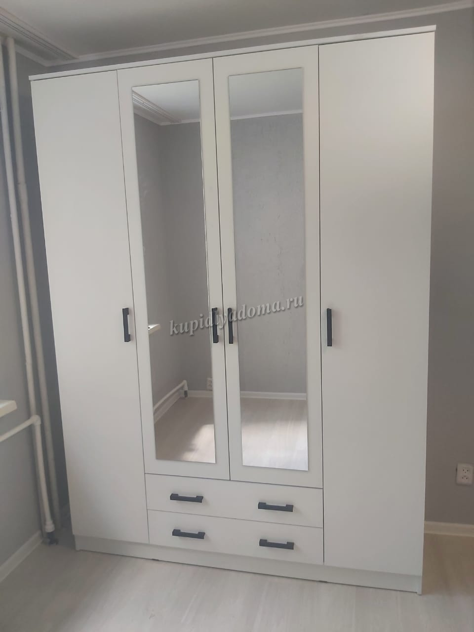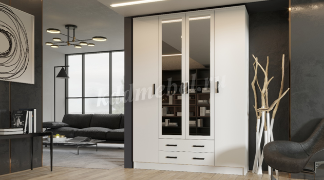 Помимо своей большой функциональности, четырехдверный шкаф Квадро отлично впишется в любое помещение Вашей квартиры либо дома, ведь у него в наличии 2 больших зеркала закрепленных на центральных дверях.