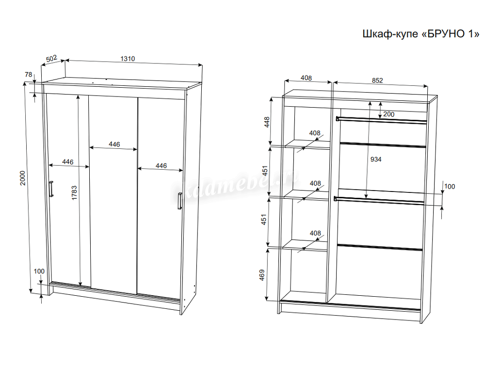Описание Шкаф-купе Бруно-1 (Венге/Лоредо)