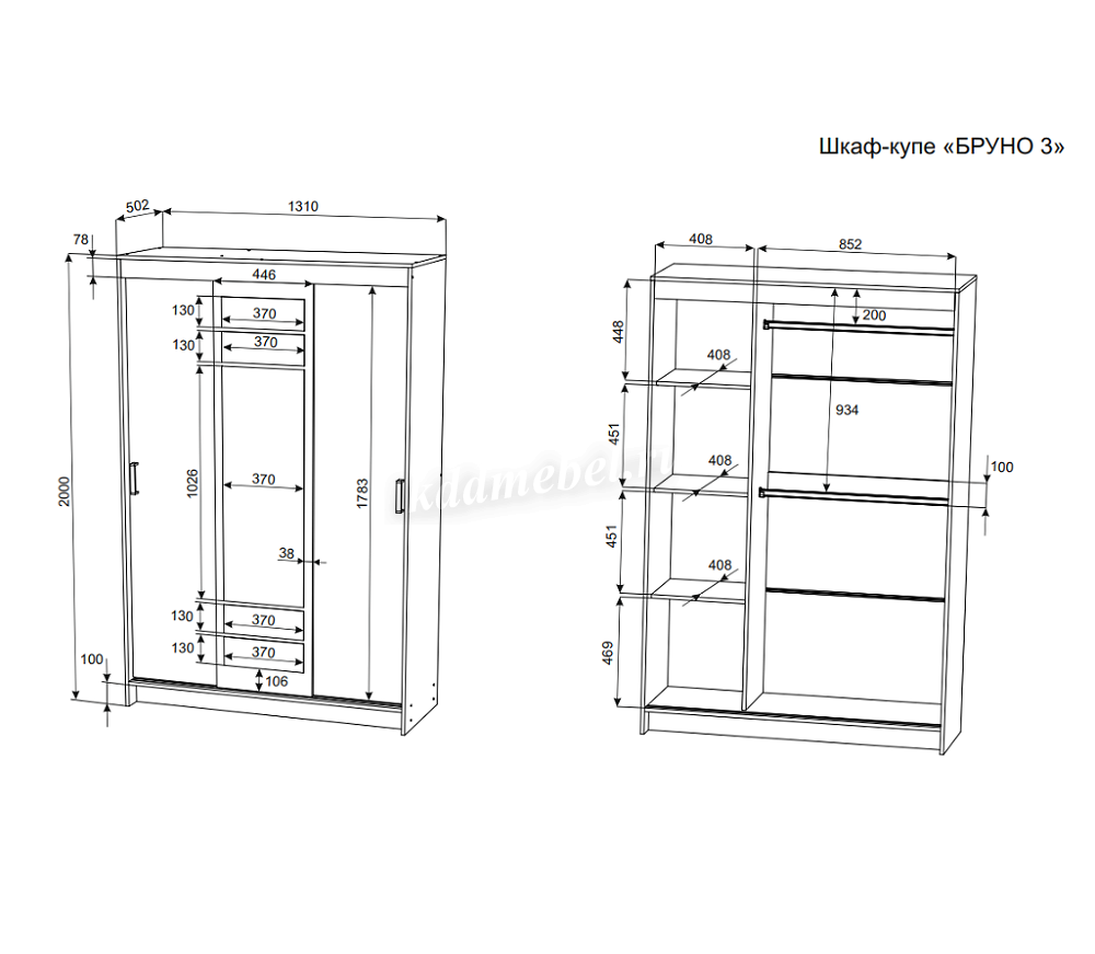 Шкаф-купе Бруно-3 (Белый) наличие товара: