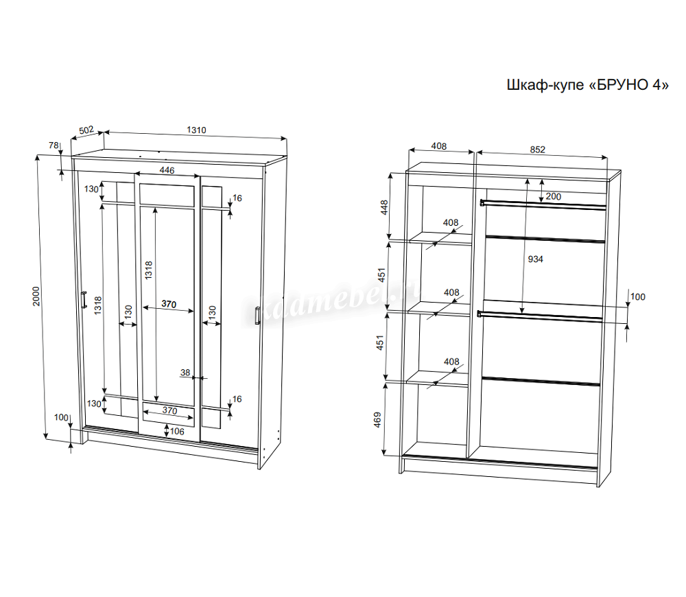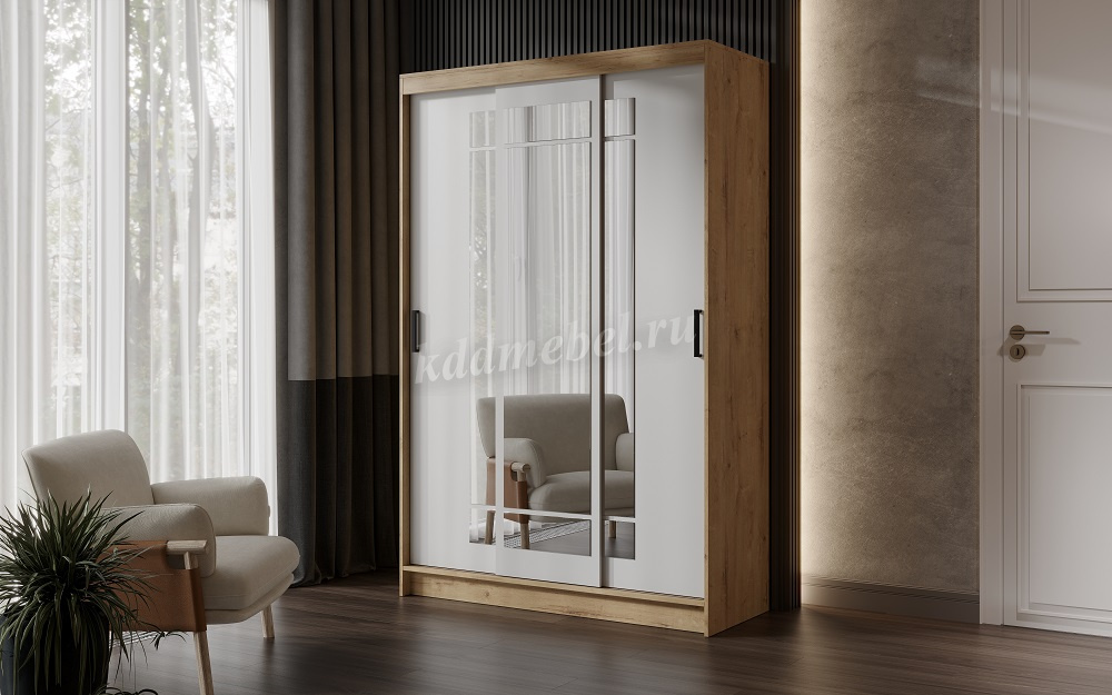 Описание Шкаф-купе Бруно-4 (Дуб вотан/Белый)