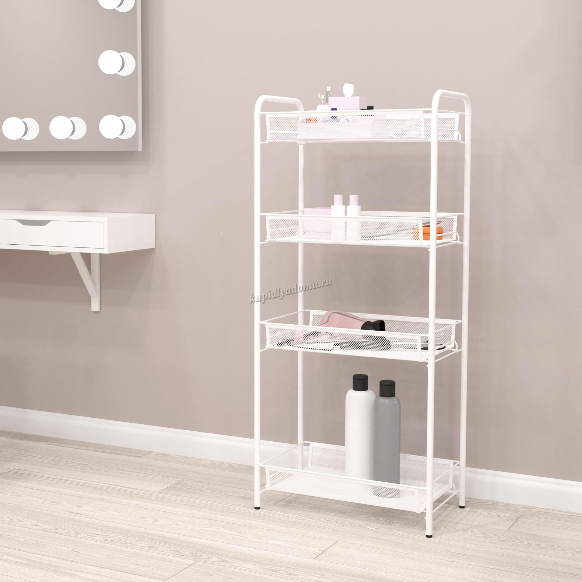 - Этажерка изготовлена из металла и покрыто полимерным слоем.