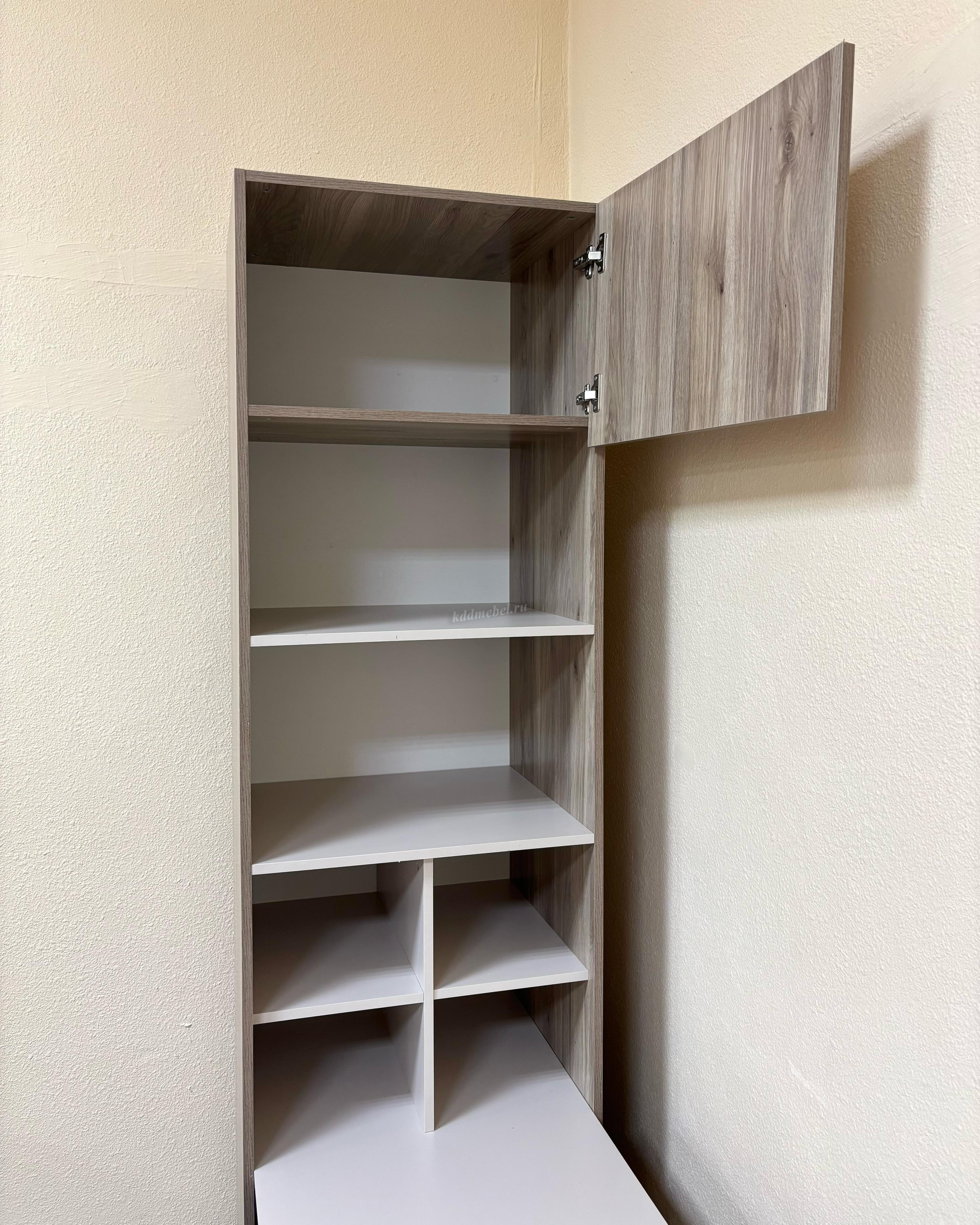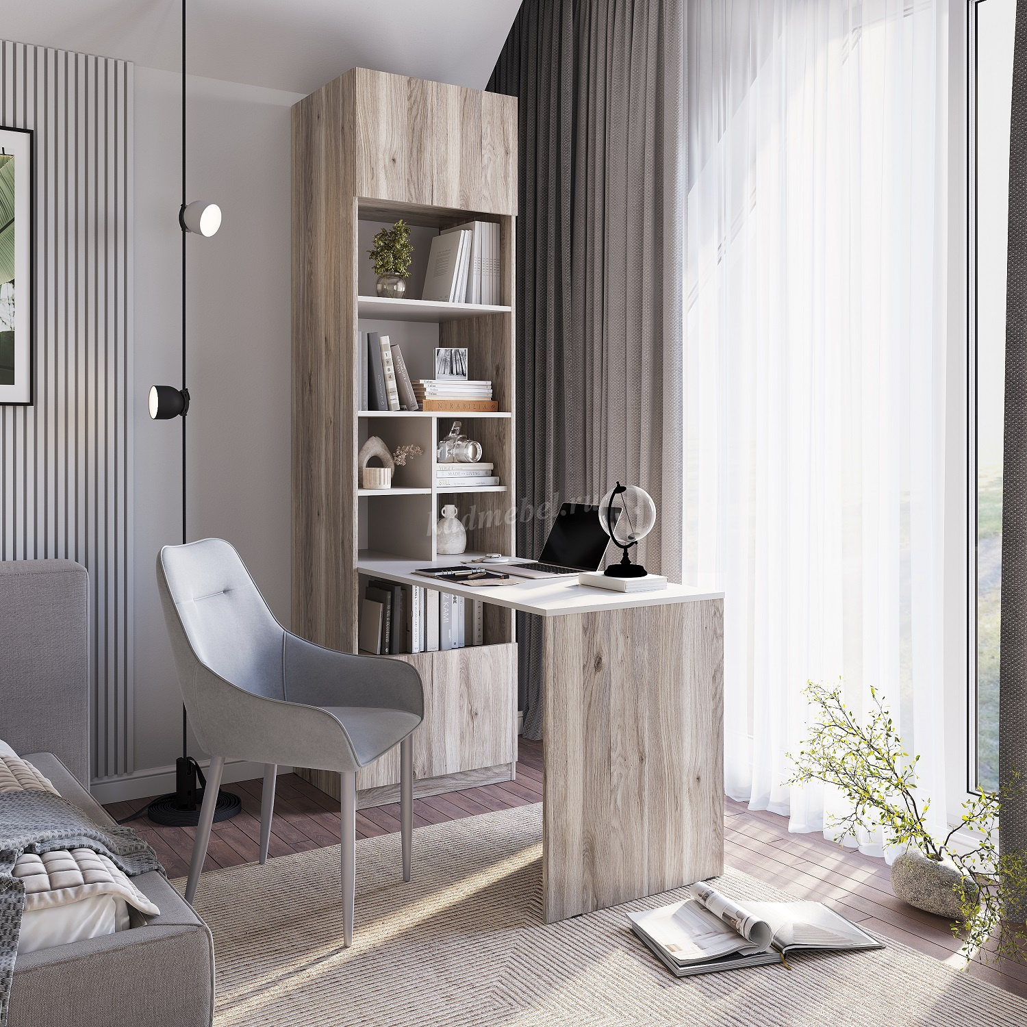 Стол-шкаф Урбан – это минималистичная стильная модель, которая подойдет для учебы и работы. Особенность данной модели – встроенный вертикальный блок с полками для хранения книг, документов и техники.